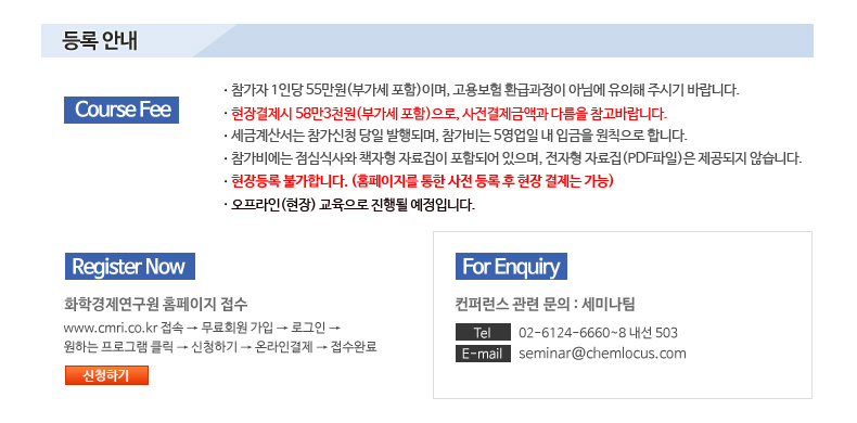 ▷ 신청문의: 세미나팀 ☎ 02-6124-6660~8 내선503 seminar@chemlocus.com