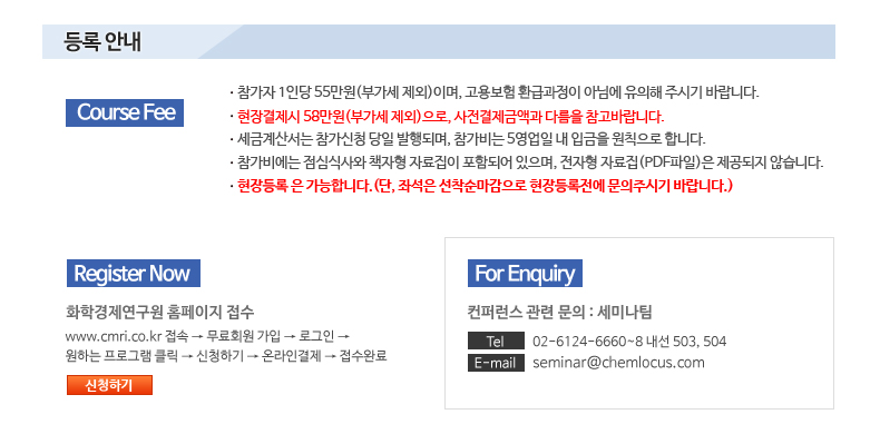 ▷ 신청문의: 세미나팀 ☎ 02-6124-6660~8 내선504 seminar@chemlocus.com
