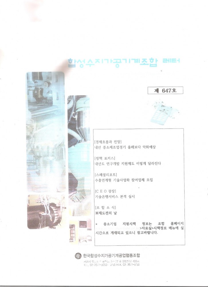[경제흐름과 전망] 내년 중소제조업경기 올해보다 악화예상 [정책 포커스] 내년도 연구개발 지원제도 이렇게 달라진다 [스페셜리포트] 수출연계형 기술사업화 참여업체 모집 [C E O 광장] 기술은행서비스 본격 실시 [조 합 소 식] ▣재도전의 날