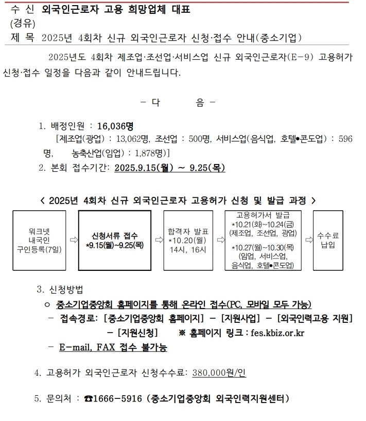 2025년 4회차 신규 외국인근로자 신청·접수 안내(중소기업)