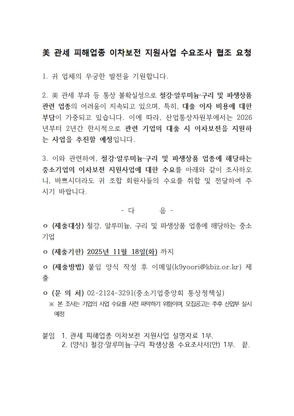 美 관세 피해업종 이차보전 지원사업 수요조사 협조 요청001.jpg