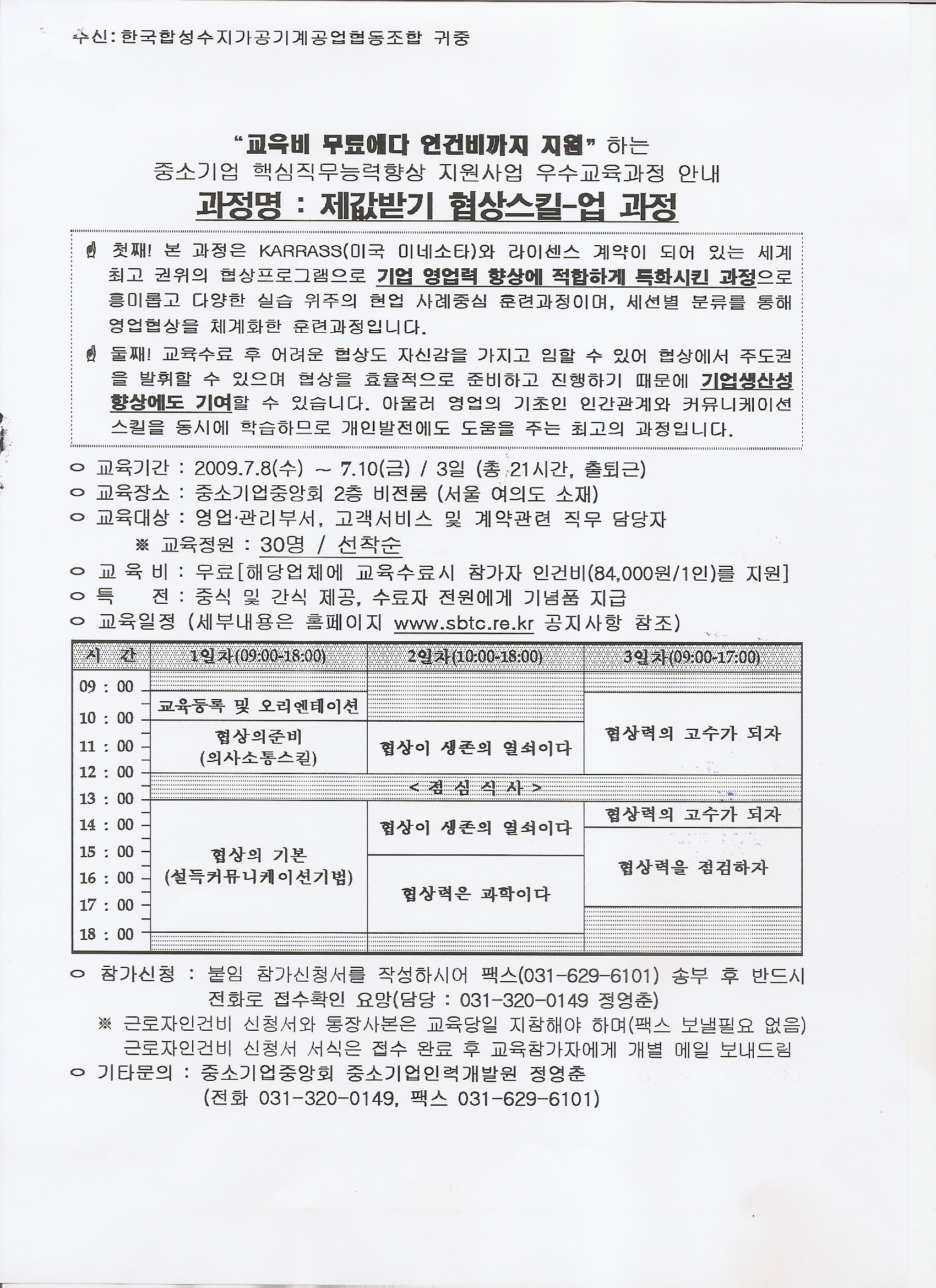 2. 중소기업중앙회 인력개발원에서는 7월-11월말까지 계획하고 있는 교육을 실시한다고