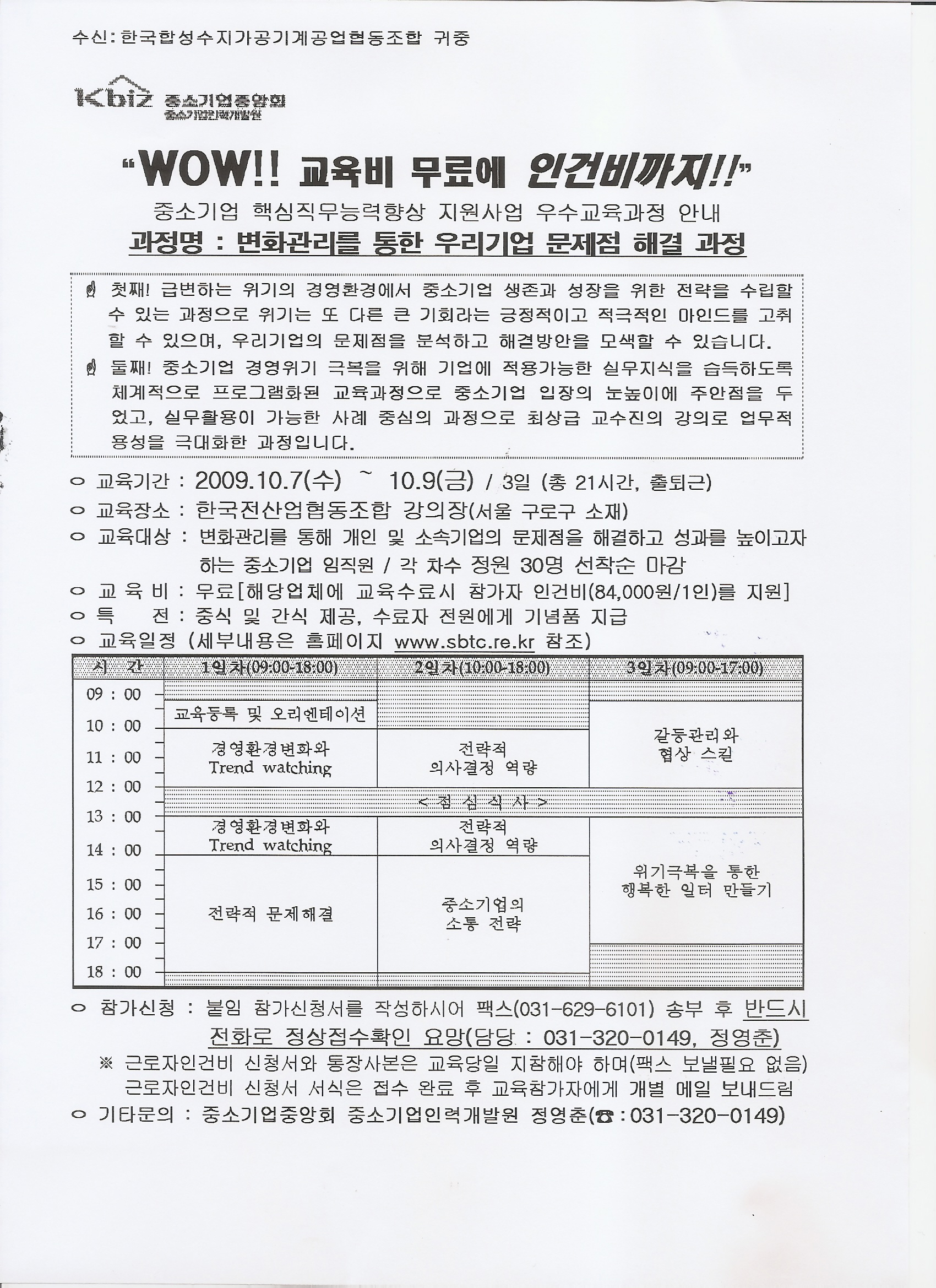 3. 아울러, 중소기업 경영위기 극복을 위해 기업에 적용 가능한 실무지식을 습득하도록 체계적으로 프로그램화된 교육과정으로 중소기업 입장의 눈높이에 주안점을 두었다고 하고, 실무활용이 가능한 사례 중심의 과정으로 최상급 교수진의 강의 로 업무적용 성을 극대화한 과정이라고 합니다.