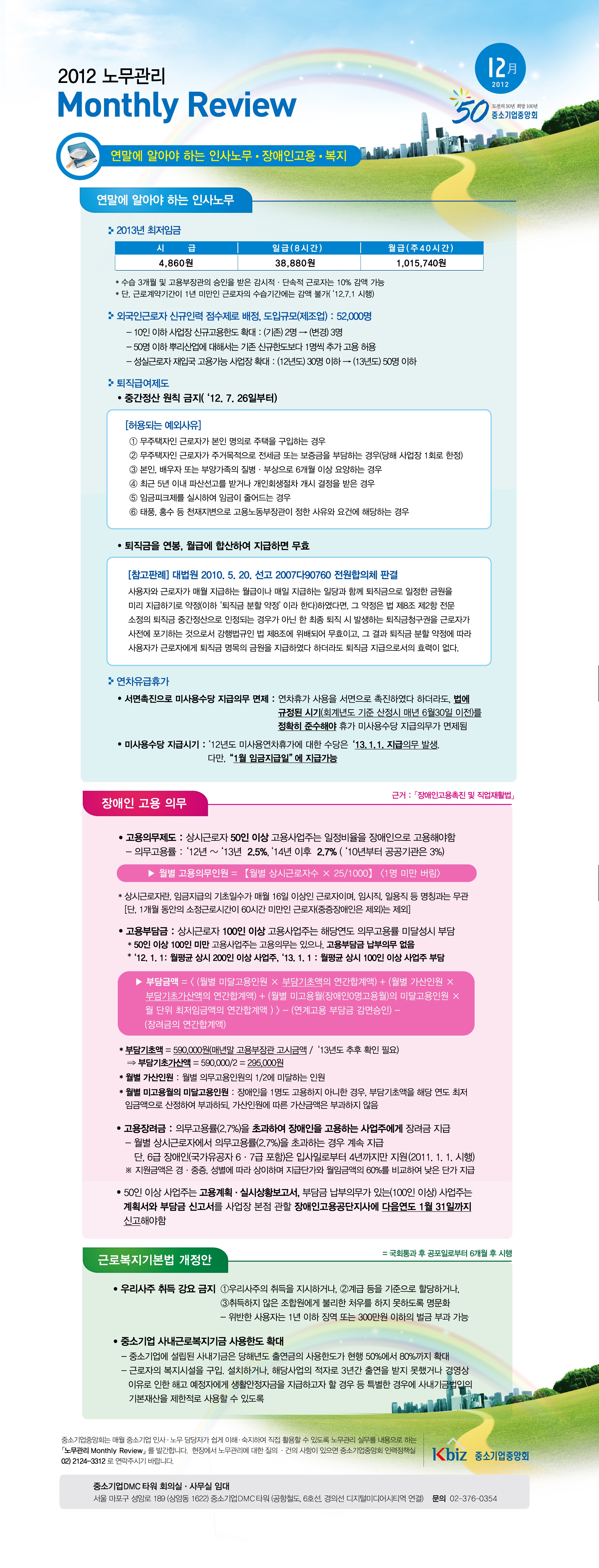 제목 : 2012년 연말에 알아야 하는 인사노무, 장애인고용, 복지 안내