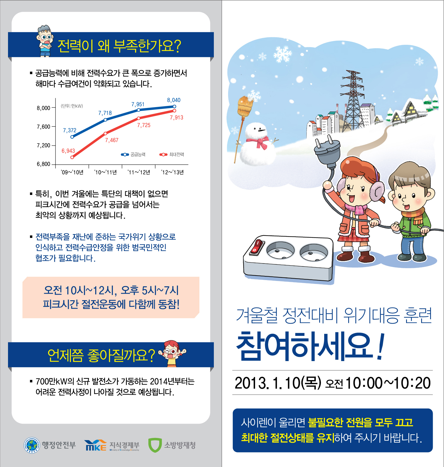 겨울철 정전대비 위기대응 훈련 참여하세요!