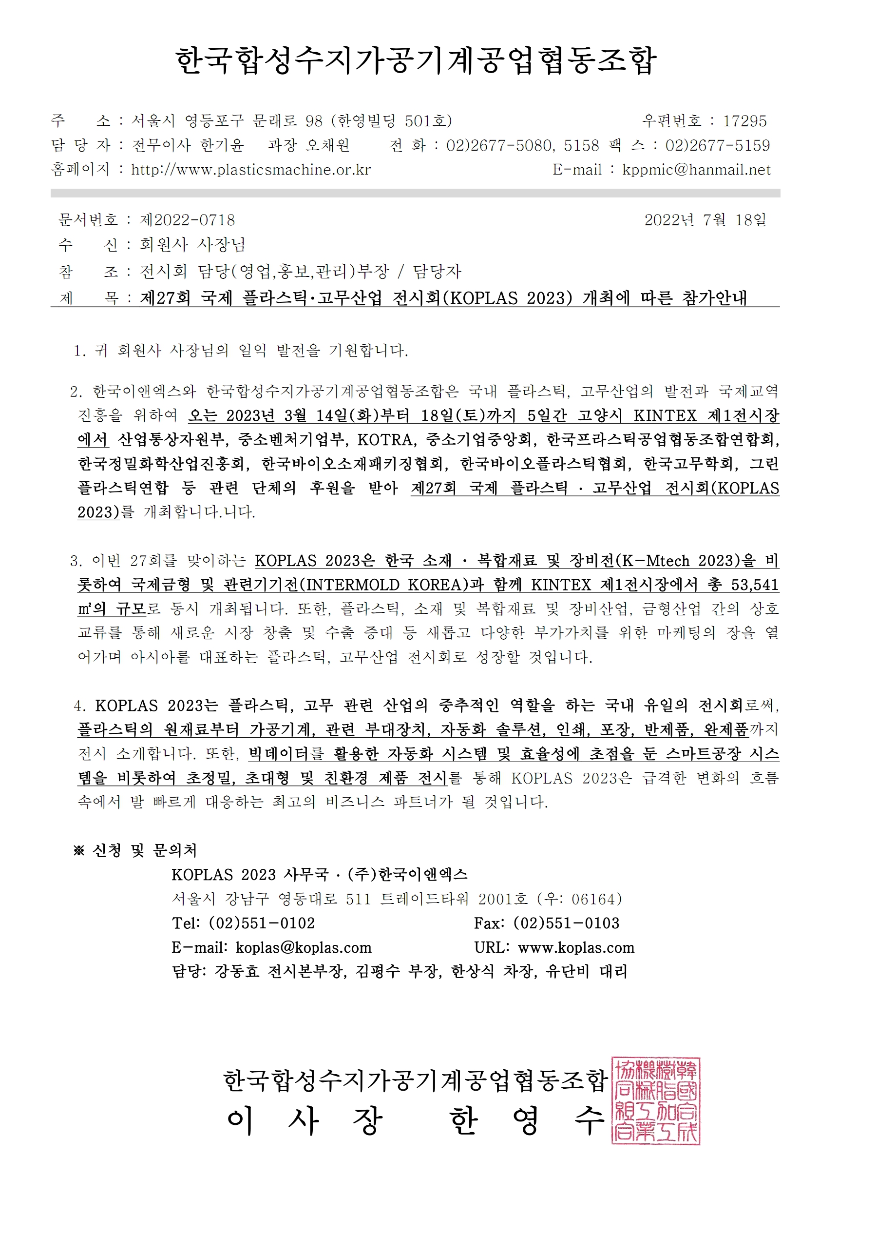 제27회 국제 플라스틱・고무산업 전시회 참가안내