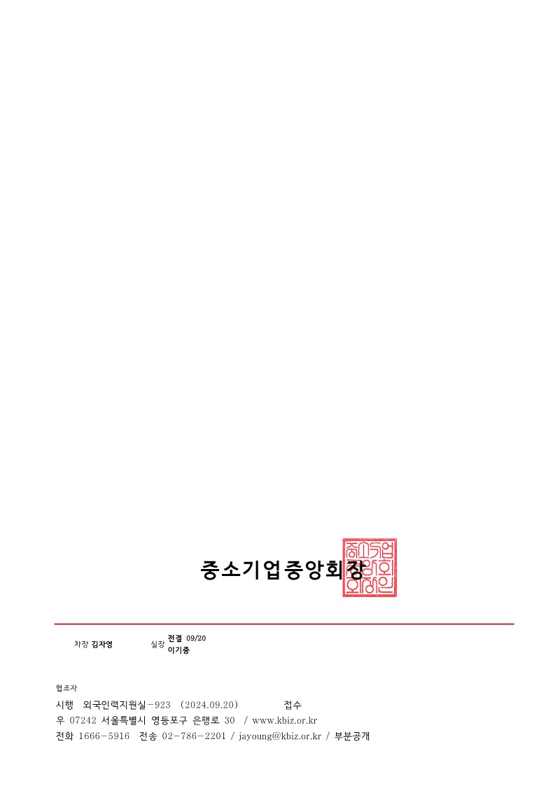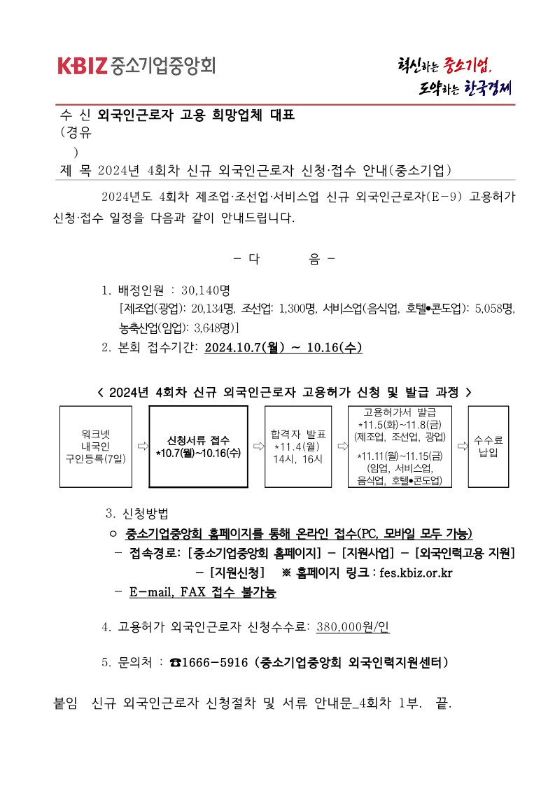 2024년 회4차 신규 외국인근로자 신청 접수· 안내 (중소 기업)